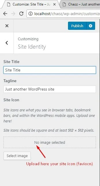 FAQs How to set site’s favicon? Estimated reading: 1 minute 921 views Go to Appearance > Customize > Site Identity. Then Select an image as site icon-
